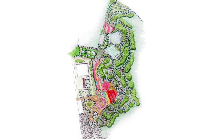 通過(guò)對(duì)入口軸線上的商業(yè)建筑、樂(lè)園設(shè)施和景觀設(shè)計(jì),加入蘊(yùn)含田園元素的雕塑小品,豐富感官體驗(yàn)。圍繞對(duì)主軸線的項(xiàng)目布局,打造出浪漫唯美的景觀環(huán)境,依次將民宿度假、仙子樂(lè)園、荷蘭商街、十里玫園、百花園、樂(lè)玩果園、生態(tài)果園等串聯(lián)起來(lái)。通過(guò)以玫瑰塔為中心,周邊種植世界著名的玫瑰品種,園內(nèi)設(shè)有特色景觀和小品打造出浪漫的景觀節(jié)點(diǎn)。