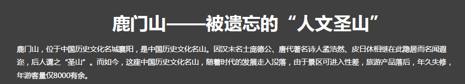 項目地點:湖北襄陽鹿門山旅游度假區